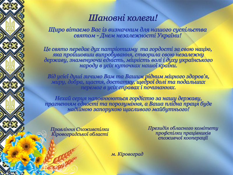 Привітання з нагоди Дня незалежності України